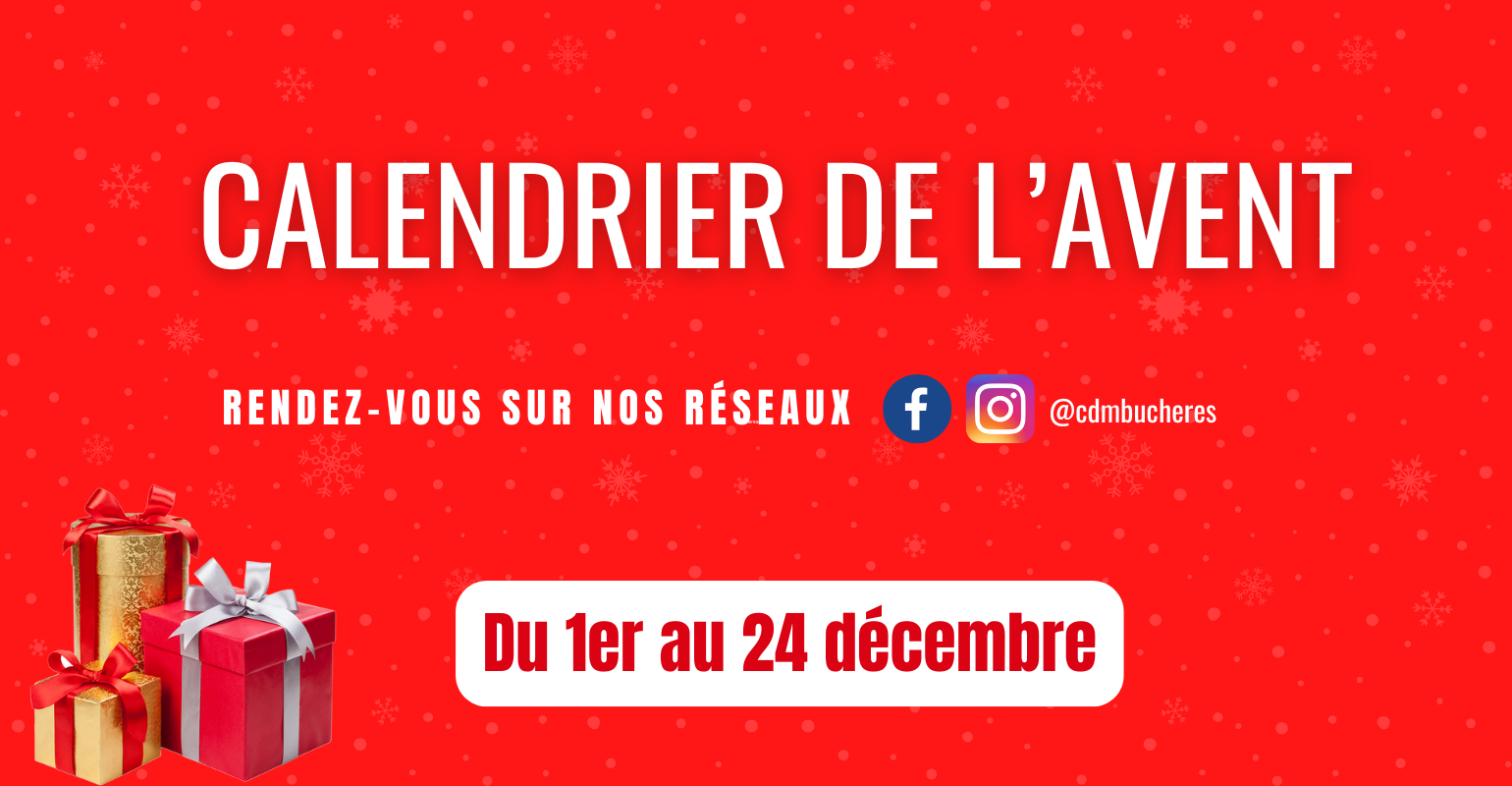 La société CDM SAS, société par actions simplifiée au capital de 300 000€, dont le siège social est situé 39 avenue des Martyrs du 24 Août 1944, 10 800 BUCHERES immatriculé au RCS de TROYES sous le numéro 552880882, organise durant la période du 01 décembre au 24 décembre 2025 inclus, un jeu gratuit et sans obligation d’achat sur ses réseaux sociaux Facebook et Instagram https://www.facebook.com/cdmbucheres  et https://www.instagram.com/cdmbucheres/. Cette opération n’est ni organisée, ni parrainée par Facebook ou Instagram.